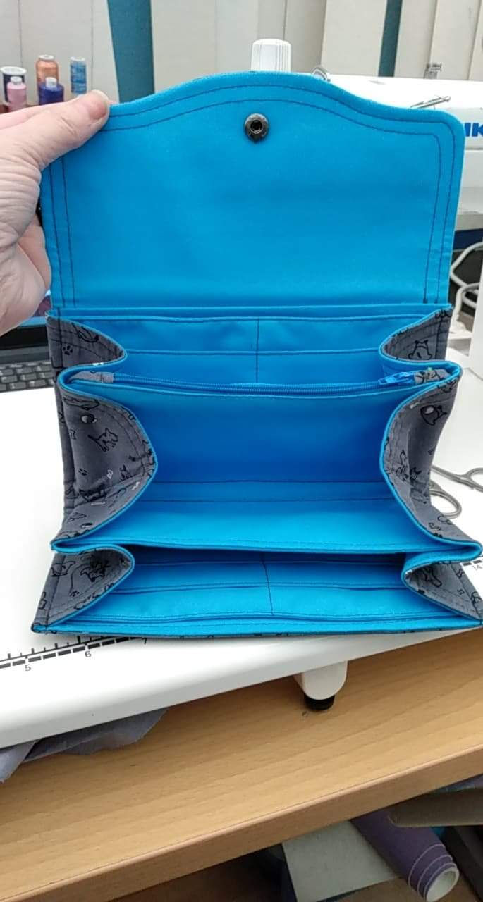 Dog walking bag in purple waxed canvas .